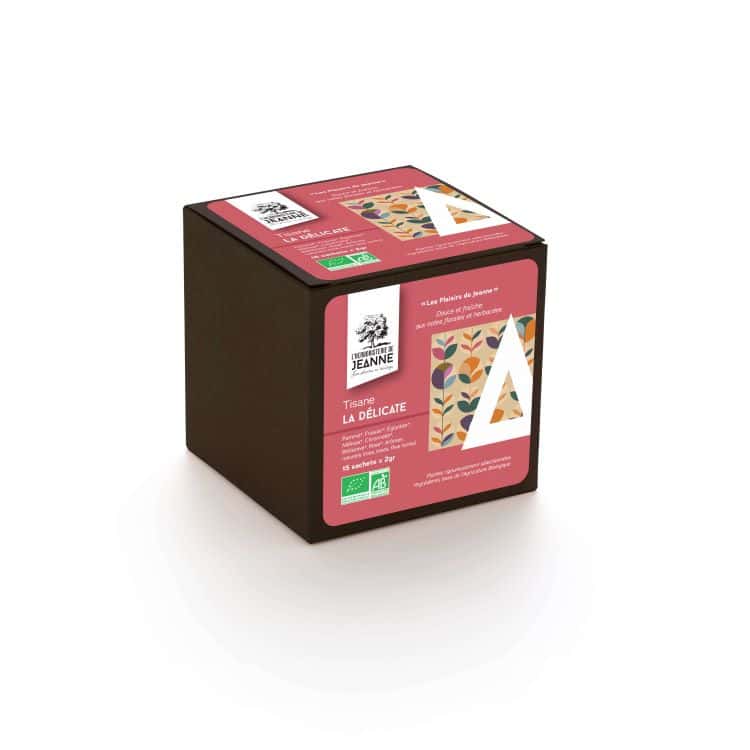 - Plongez dans un moment de douceur avec notre tisane LA DÉLICATE, une infusion biologique subtilement parfumée qui allie la finesse des fleurs à la fraîcheur des plantes.